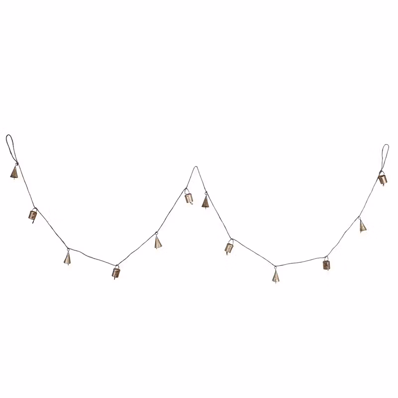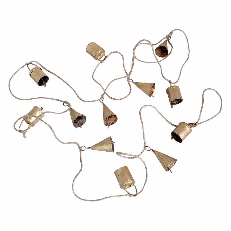 En underbar girlang med flera små klockor i mässing. Denna är ljuvlig att hänga upp som dekoration till jul. I julgranen, lägg på julbordet eller häng i ett fönster.